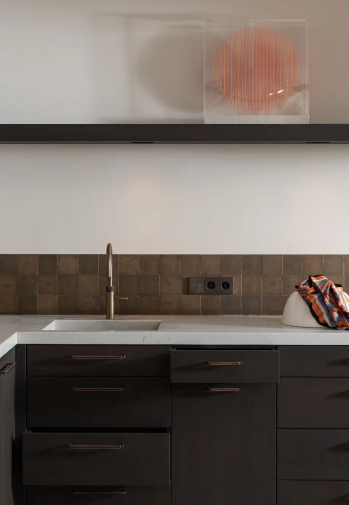 Elke lijn, elke textuur en elk materiaal is bewust gekozen om zowel praktisch als visueel sterk te zijn. We kijken hoe licht door de ruimte beweegt, hoe kleuren de sfeer bepalen en hoe elementen reageren op hun omgeving. Dit vertaalt zich in een high-end keuken waarin alles samenkomt en klopt.